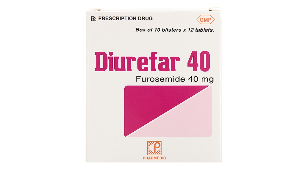 Thuốc Diurefar 40 của Công Ty Cổ phần Dược Phẩm Dược Liệu Pharmedic, thành phần chính furosemid 40mg, đây là thuốc được dùng để làm giảm lượng nước dư thừa trong cơ thể (giảm phù nề) gây ra bởi các bệnh lý như: Suy tim, bệnh gan và bệnh thận. Đồng thời, thuốc có thể làm giảm bớt các triệu chứng như khó thở và sưng ở tay, chân, bụng.