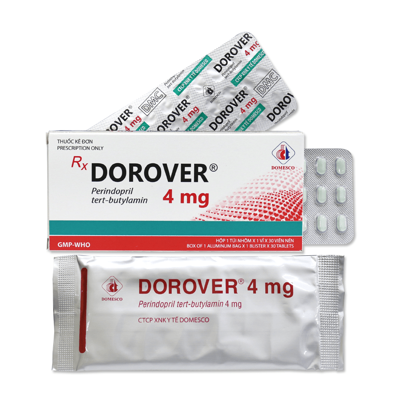Thuốc Dorover 4mg là sản phẩm của Công ty Domesco, với thành phần chính Perindopril tert-butylamin. Đây là một loại thuốc dùng để điều trị tăng huyết áp và chứng suy tim sung huyết.