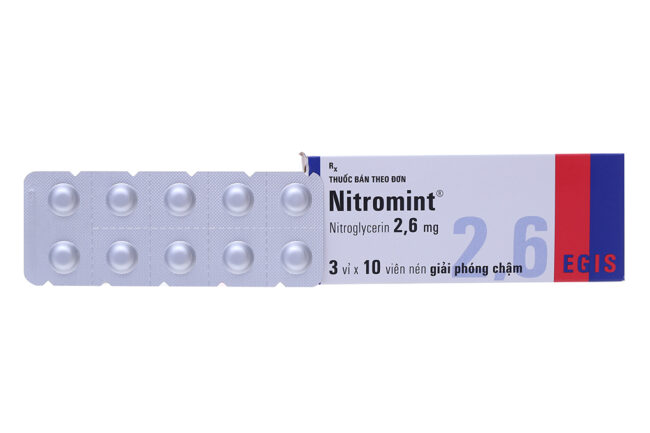 Nitromint 2 6mg có thành phần chính là Nitroglycerin được dùng để điều trị hỗ trợ trong bệnh suy tim trái nặng hay suy tim toàn bộ. Dự phòng cơn đau thắt ngực.